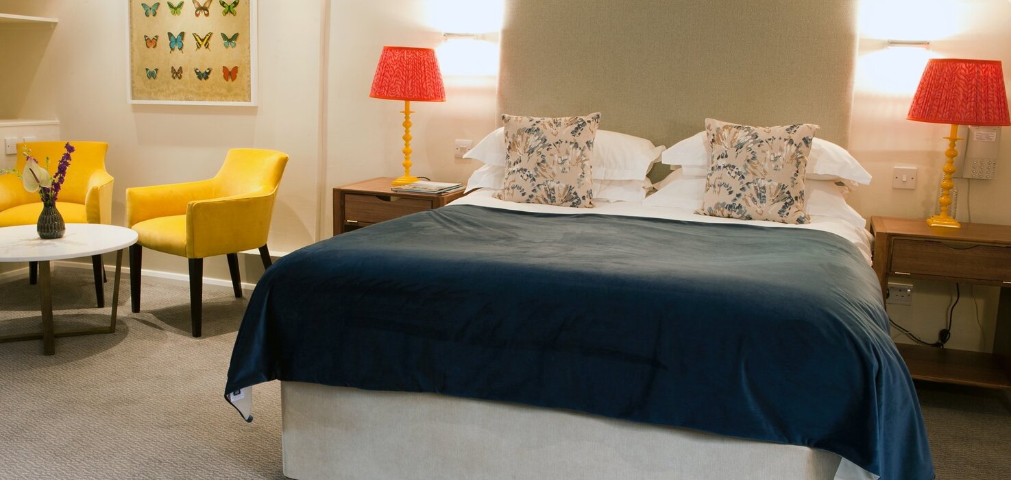 - rooms with a cosy living room and a king bed.